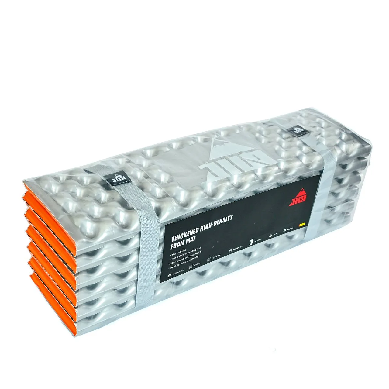 زیرانداز کیسه خواب آکاردئونی جیلو مدل MT100 از جنس فوم و در برابر رطوبت و حرارت عایق است. در یک سمت این زیرانداز یک روکش آلومینیومی قرار دارد که از هدر رفت گرما جلوگیری میکند و حرارت تابشی را به بدن بازمیگرداند. ابعاد زیرانداز آکاردئونی جیلو (Jilo) در حالت باز ۱.۷*۵۵*۱۸۵ و در زمان بسته ۱۳.۵*۱۳*۵۵ سانتیمتر است.
