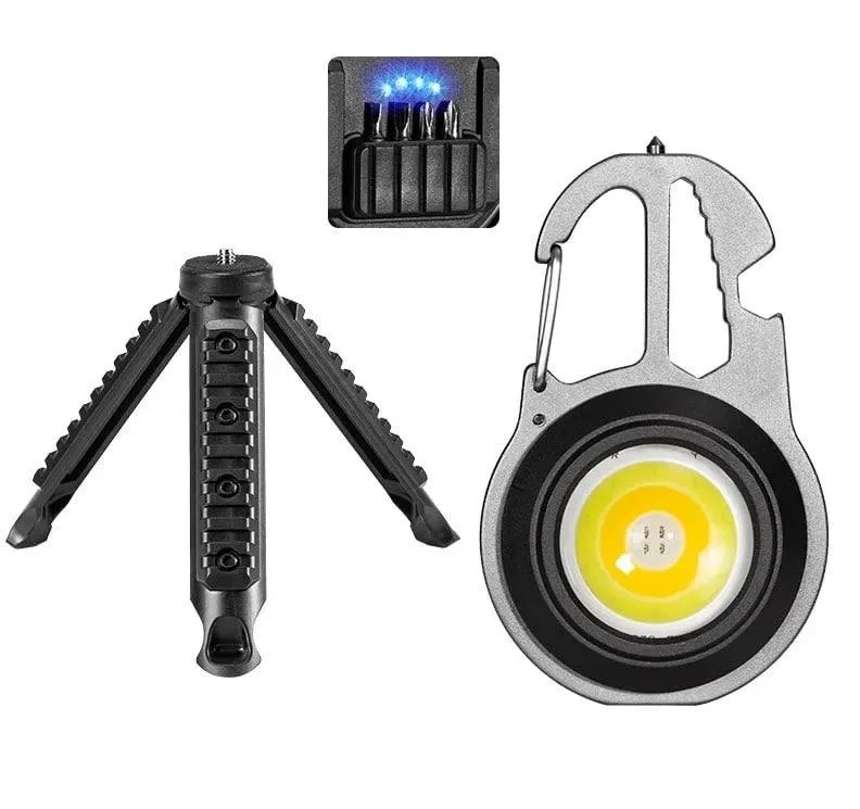 این محصول یک ابزار همهکاره (Multi-tool) است: ,سه پایه: ,همراه با یک سه پایه کوچک برای استفاده به عنوان چراغ کار یا چراغ مطالعه ارائه میشود. ,آهنربا: ,در قسمت پشت دارای مگنت قوی برای اتصال به سطوح فلزی (مانند کاپوت ماشین) است. ,ابزارهای جانبی: ,مجهز به درببازکن بطری، کارابین (گیره اتصال)، سوت اضطراری و در برخی مدلها پیچگوشتی و شیشهشکن است. |